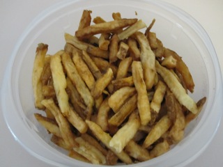 This (leftover fries from Five Guys Burgers and Fries — who can eat a whole side of these?)