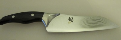 It’s a bit heavier than my other Shun santoku, but that’s a plus. It also has a slightly flatter curvature near the tip. It’s so sharp I knocked out a cup of thinly-sliced shallots in about half a minute.