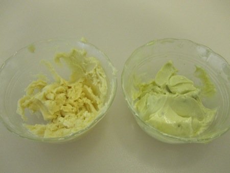While the stock simmered, I mixed the equal portions of flour and butter together to make a beurre manié, then mixed the larger quantity of butter with the tomalley, and passed it through a fine-meshed sieve.