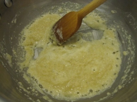 Time for the soufflé: I set the milk over low heat, then made a roux from the butter and flour, cooking it for about two minutes.
