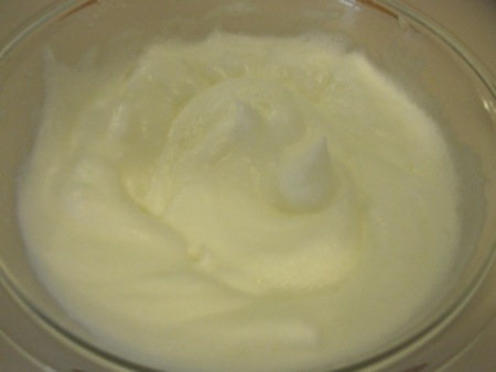 I beat the egg whites until they were foamy, added the cream of tartar and a pinch of salt, and continued beating until they formed stiff shiny peaks.
