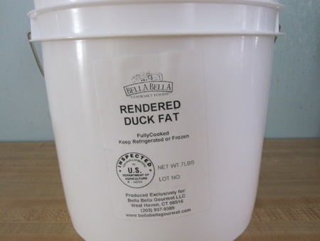 When I bought twenty pounds of duck legs in February, I had duck confit in mind. The preparation is simple, but the longer you wait to eat the final product, the better it tastes. Apart from the duck itself, the other key ingredient is rendered duck fat, and plenty of it. I ordered a seven-pound bucket of the stuff the same day I bought the legs: