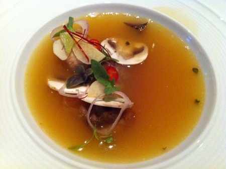 Tom yum: hot and sour broth, pork belly, tomato, ginger