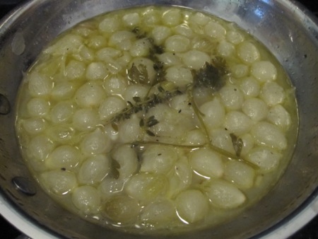 While the chicken simmered I prepared some braised pearls onions