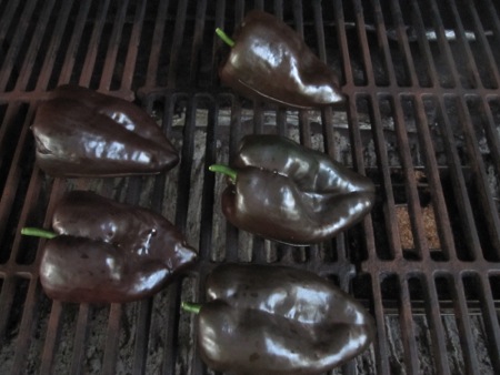 I did use the dehydrator for another batch of peppers, some purple poblanos I found at the farmer’s market.