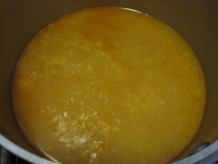 I removed the mussels, strained the grit out of the cooking liquid, then returned it to the pan along with the orange juice, chicken stock, and piment d’Espelette, simmering until reduced to a half cup. I stirred in a quarter cup of olive oil and kept the sauce warm.