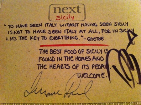 I’m from a Neapolitan family, so seeing Sicily was pretty low on our list when we honeymooned in Italy. I am, however, familiar with the differences in the two cuisines, and was looking forward to what would be served.