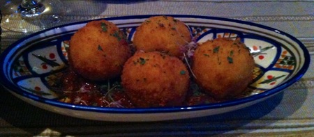The arancine were made from saffron risotto and filled with lamb’s tongue confit. The simple tomato sauce provided necessary acidity.