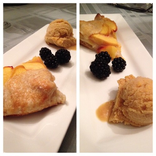 Peach galette, blackberries, and peach/brown sugar/bourbon ice cream.