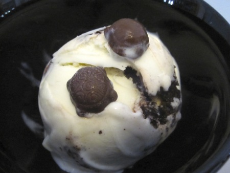 What surprised me was seeing the prominent placement in the exhibit of the vegetable panaché, both the plating model and a photo of the final dish, which is an arrangement of basil gel, corn mousse, beet foam, tomato sorbet, cauliflower mousse, peach ice, almonds, avocado, and almond sorbet.
