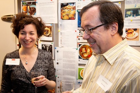 Despite founder Christopher Kimball’s “ship of fools” dismissal of food blogging (and his follow-up), he has come to acknowledge to power of social media, going so far as to create a social media group in his own publishing empire. In addition to featuring the new book, they were introducing the ATK Feed (and their very entertaining Tumblr blog — don’t miss the Friday fail/win feature). This is me with senior books editor Lori Galvin in front of the “wall of awesome,” a collection of tweets, Instagrams, and posts about ATK projects.